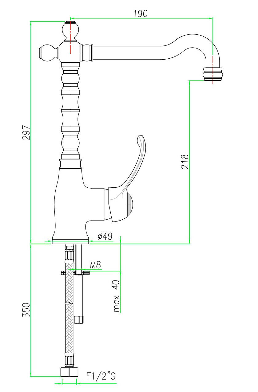 Смеситель для раковины с высоким изливом без донного клапана Webert Aurora AU831802015