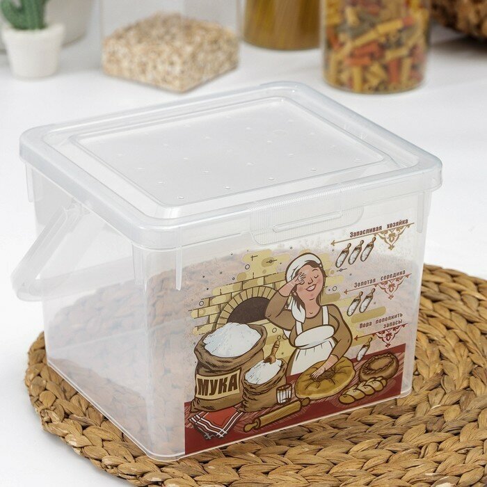 FACKELMANN Контейнер пищевой для хранения муки 5,3 л, контейнер с крышкой и ручкой, ёмкость для продуктов, ящик для муки, органайзер для хранения, контейнер для шашлыка и еды