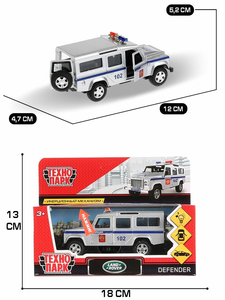 Купить Машина металл свет-звук Лэнд Ровер Дефендер, Полиция 12 см, Технопарк DEFENDER-P-SL