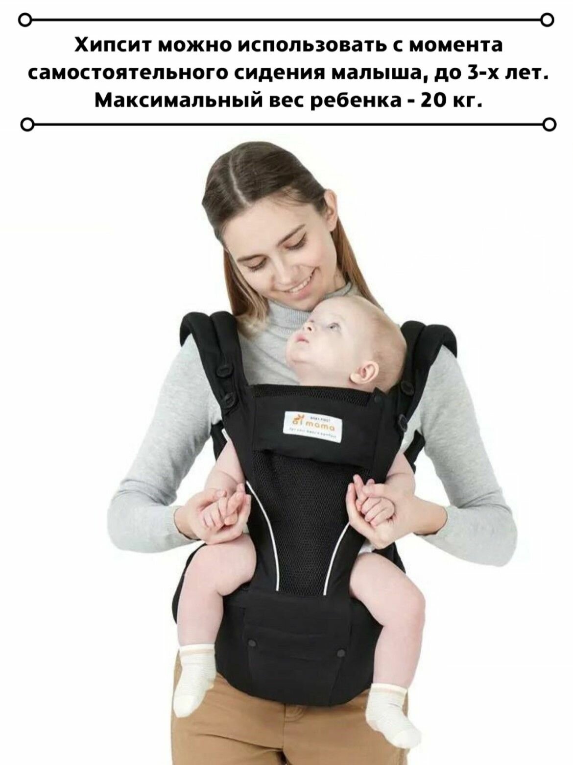 Хипсит со спинкой кенгуру Aimama - черный интересное: