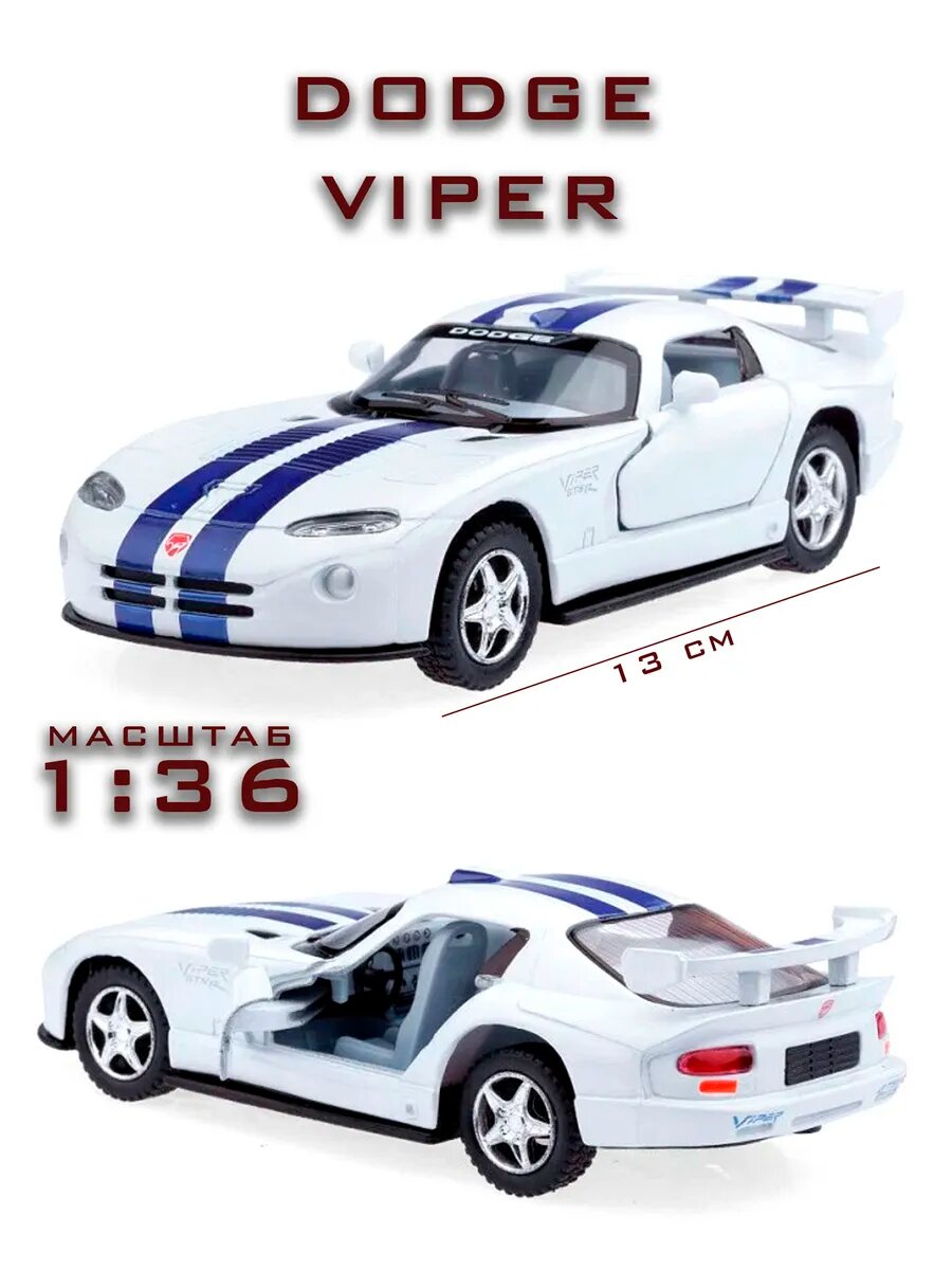 Металлическая машинка 1:36 Dodge Viper GTS-R , инерционная / Белый интересное: