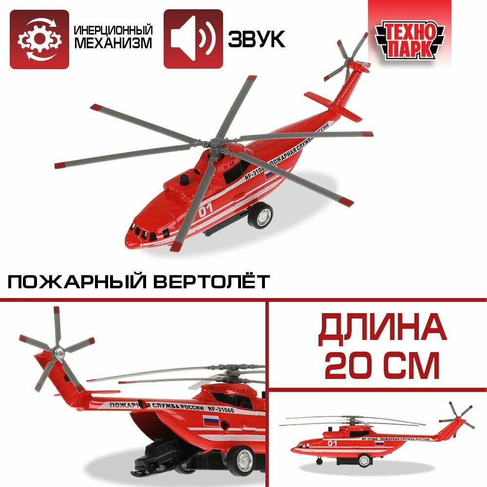 Вертолет игрушка для мальчика Технопарк пожарный металический со световыми и звуковыми эффектами подвижные детали 20 см