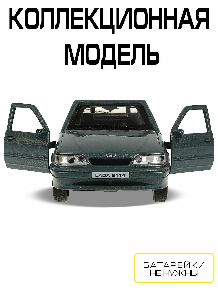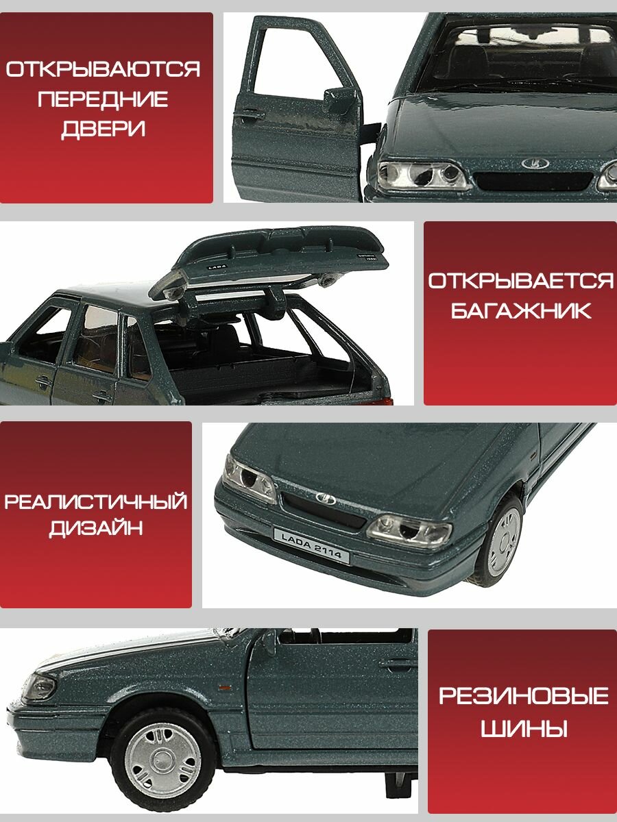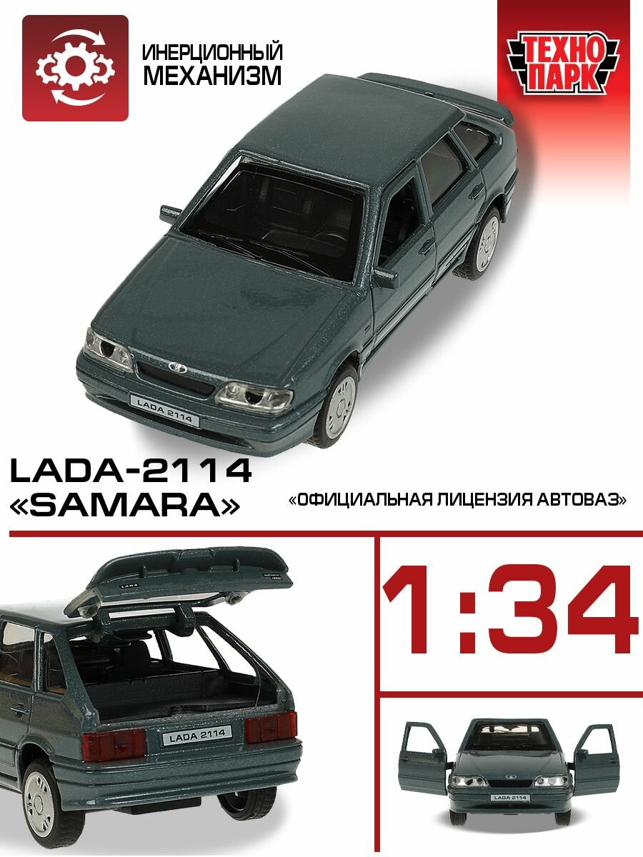 Купить Машинка детская Лада ВАЗ 2114 Самара 12 см, Технопарк, мокрый асфальт, открываются двери и багажник, металлическая
