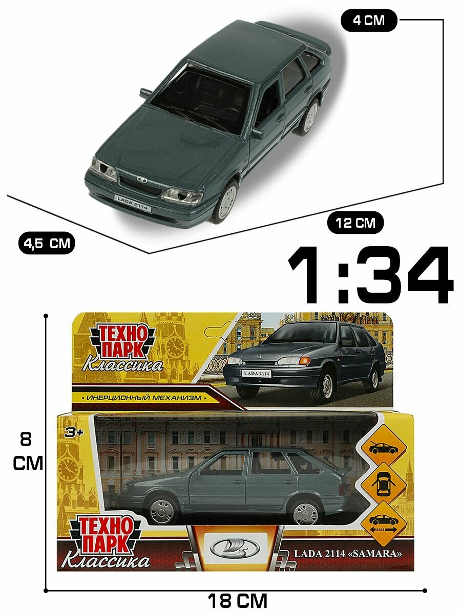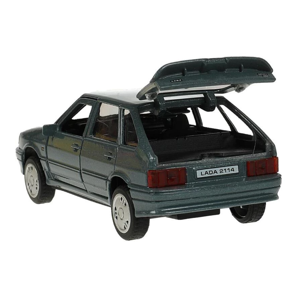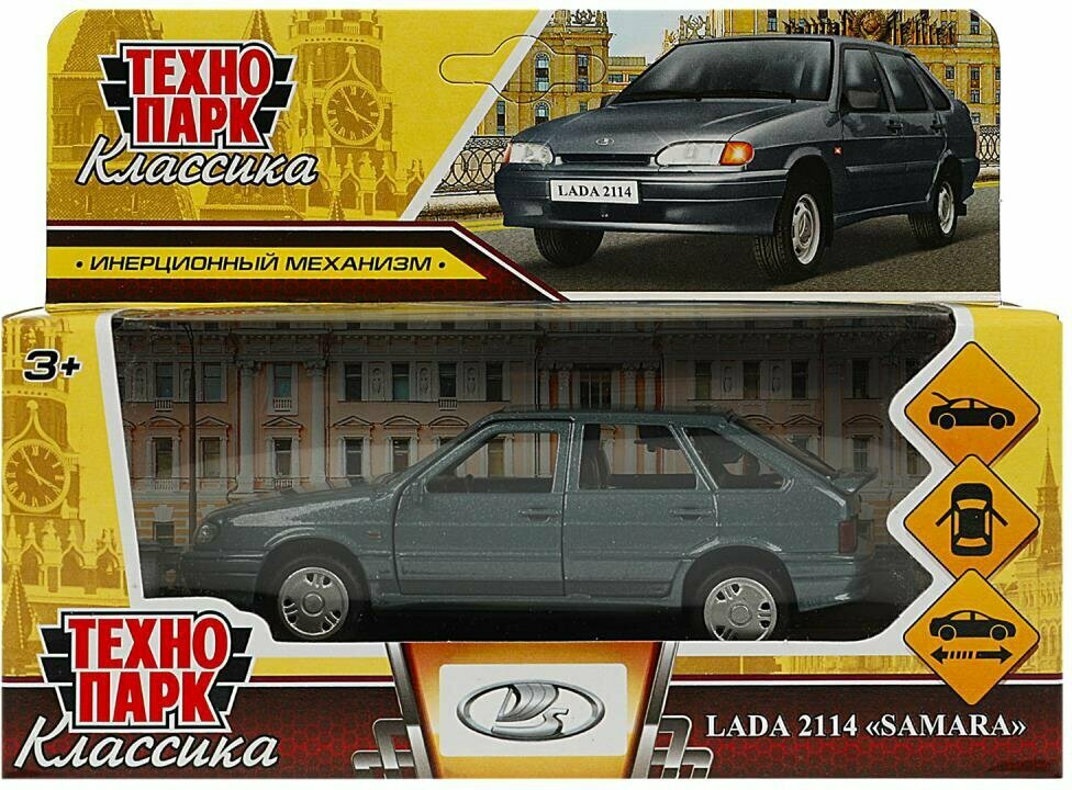 СохранитьМашинка детская Лада ВАЗ 2114 Самара 12 см, Технопарк, мокрый асфальт, открываются двери и багажник, металлическая интересное: