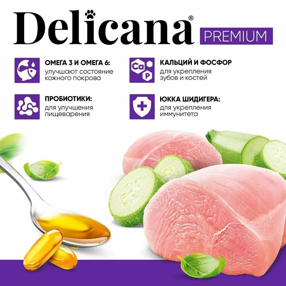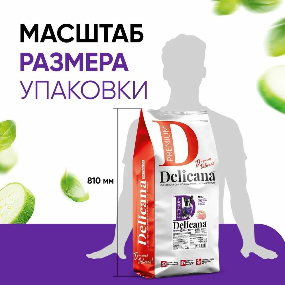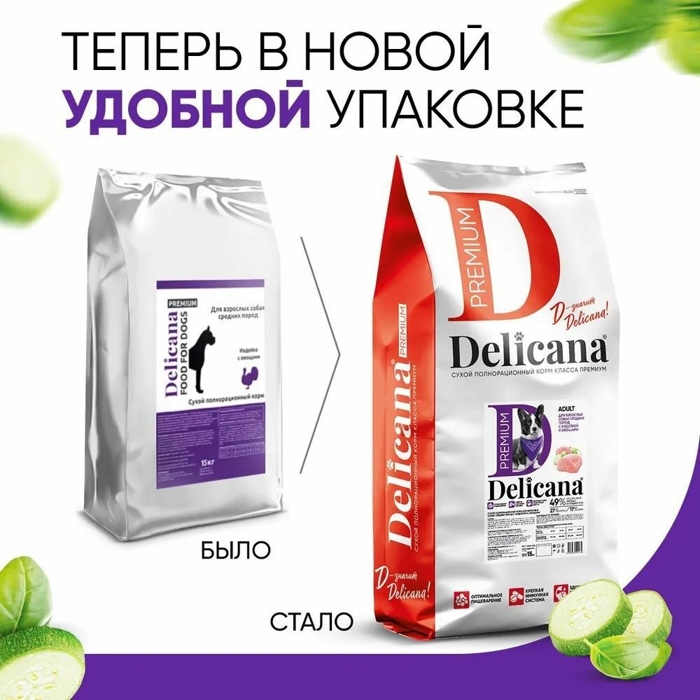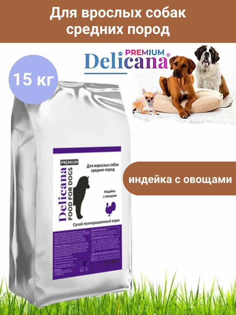 DELICANA Корм сухой для собак средних пород с индейкой и овощами, 15 кг