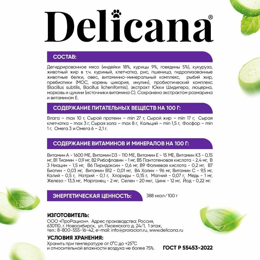 Корм сухой Delicana для собак средних пород Индейка с овощами 2 кг