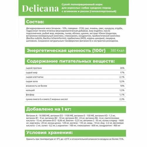 Ниже Вы можете прочитать отзывы на Сухой корм Delicana для собак средних пород, ягненок с рисом 15 кг, ознакомится с подробными характеристиками, посмотреть интересные обзоры и фотографии на Сухой корм Delicana для собак средних пород, ягненок с рисом 15 кг.