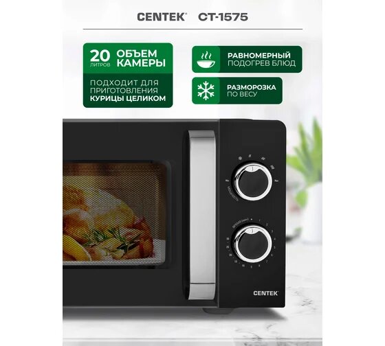 Купить Микроволновая печь Centek 700 Вт, 20 л, черный (CT-1575)