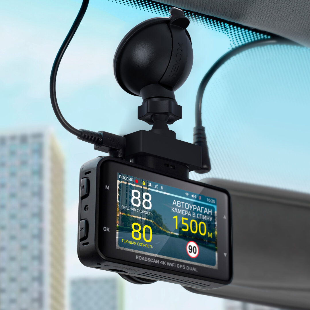 Видеорегистратор iBOX RoadScan 4K GPS автомобильный с базой камер + Внутрисалонная камера iBOX RC FHD4