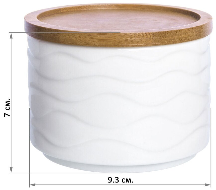 Банка для хранения 250 мл 9,3*9,3*7 см "Айсберг волны" + дер. крышка-подставка с сил. упл. интересное: