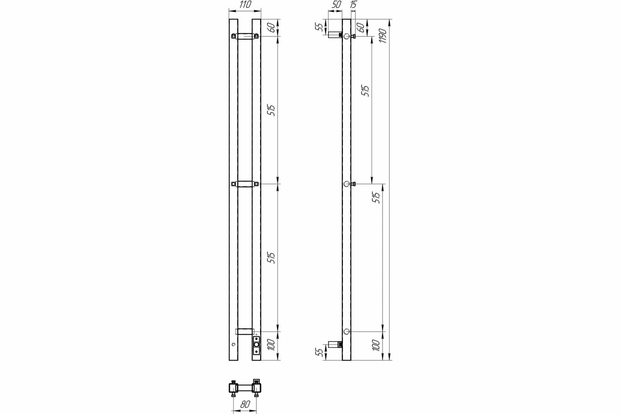 Полотенцесушитель электрический 80x1200 POINT Деметра (PN12812 П3) диммер справа