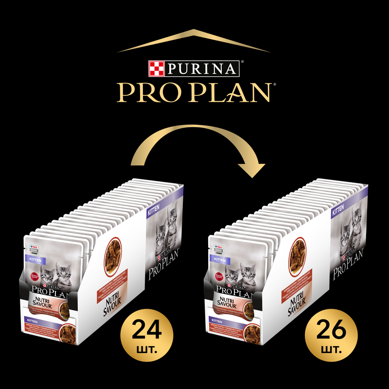 Влажный корм Pro Plan Nutri Savour для котят, кусочки с курицей в желе, пауч, 85 гр., 26 шт.