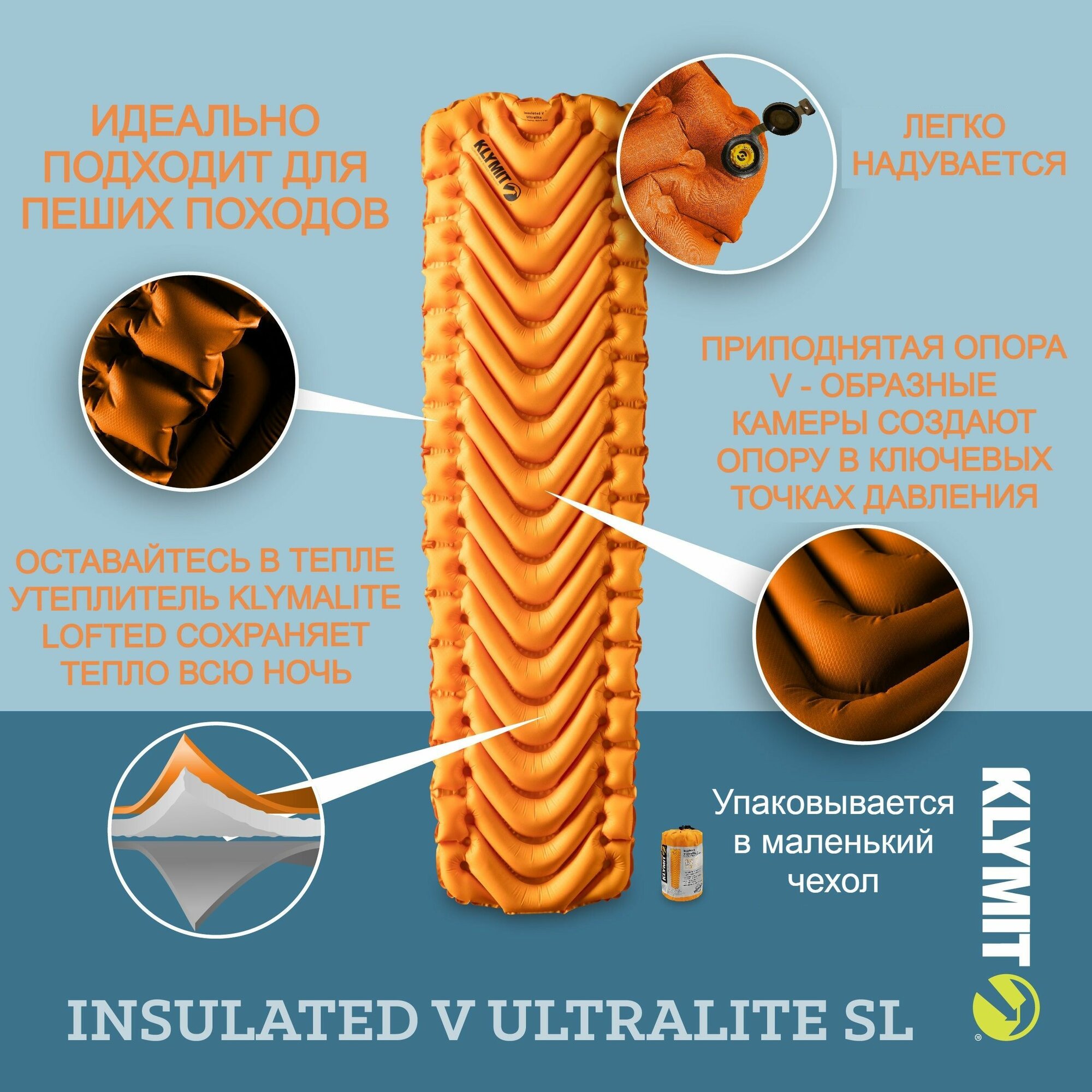 Надувной коврик Klymit Insulated V Ultralite SL, оранжевый (06IUOR02C) интересное: