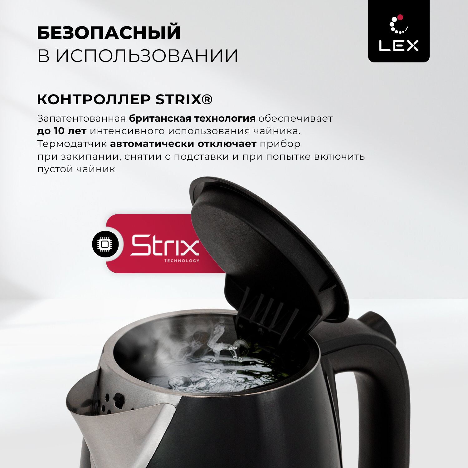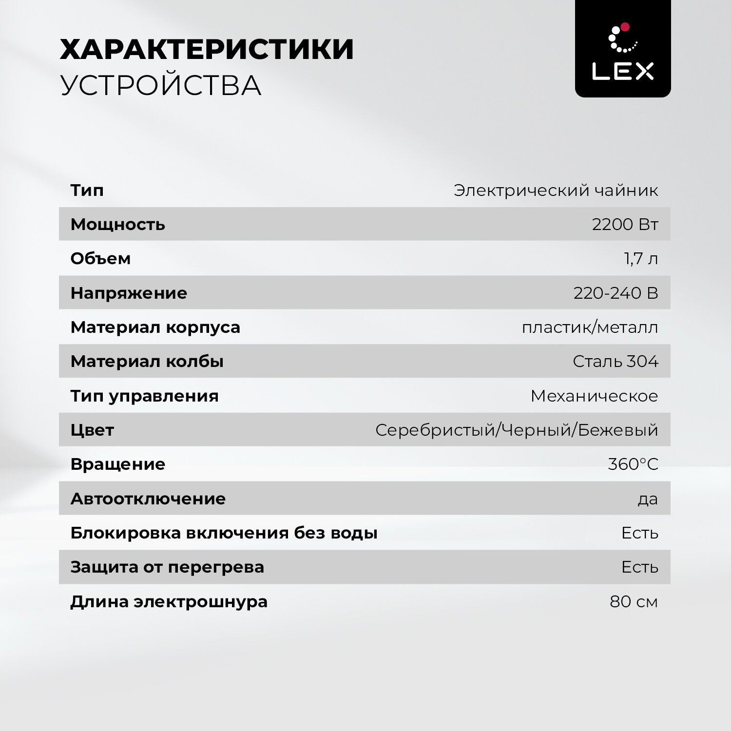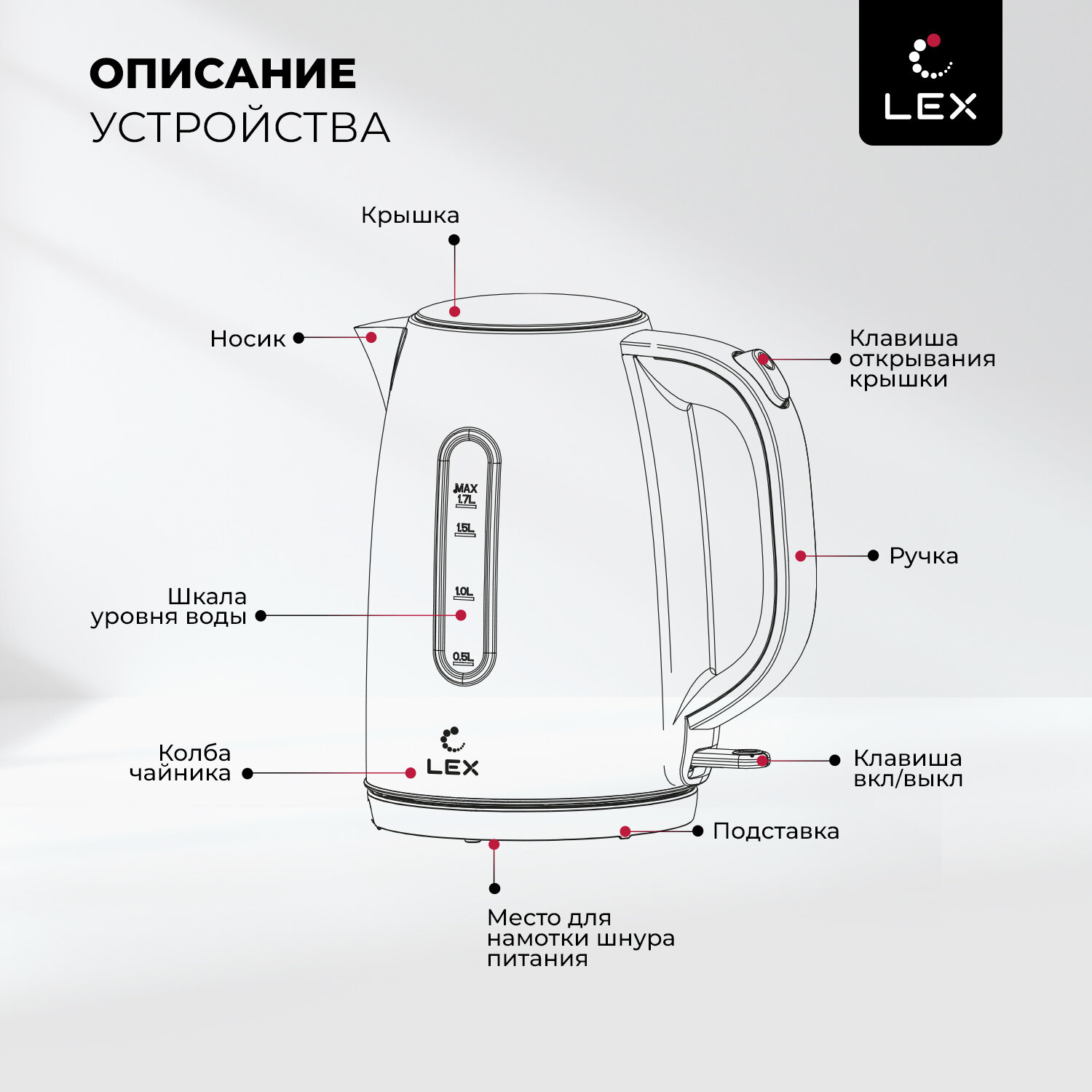 Электрический чайник LEX LX 30017-2 / объем 1,7 л / блокировка включения без воды / защита от перегрева /