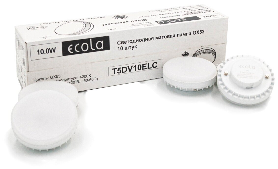 Комплект светодиодный ламп Ecola Light GX53, 10,0W, Нейтральный белый свет 4200K, 10 штук