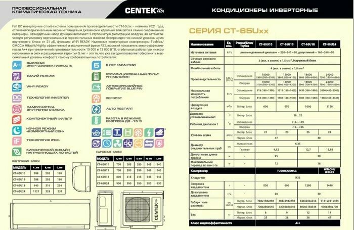 Настенная сплит-система Centek CT-65U18