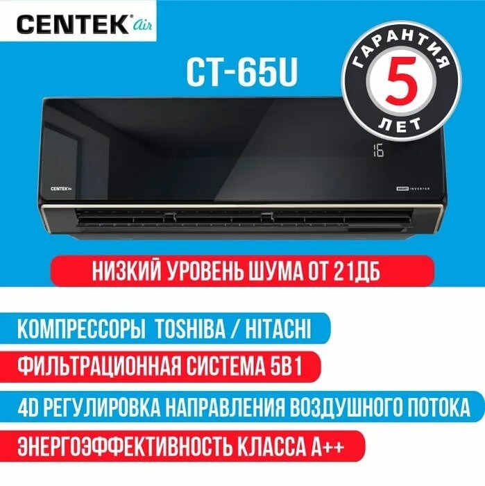 Сплит-система инверторная CENTEK CT-65U13, кондиционер для помещения до 38 кв.м.