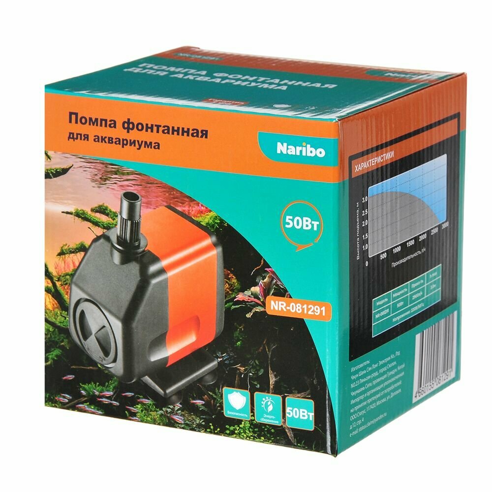 Помпа для аквариума Naribo погружная, 50 Вт, 2900 л|ч, высота подъема 3 м
