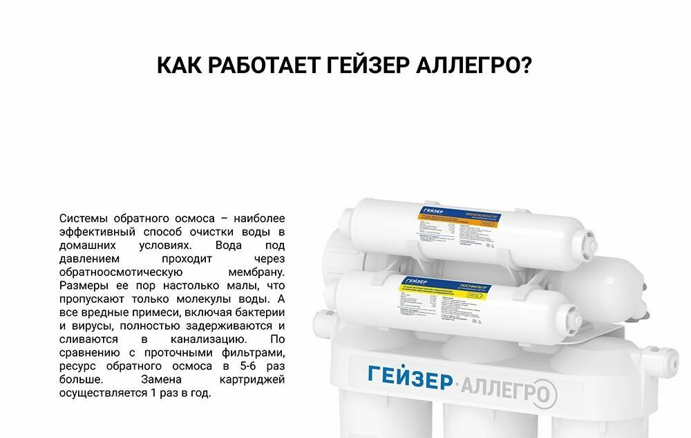 Гейзер Аллегро М фильтр для воды обратный осмос / умягчение / обезжелезивание