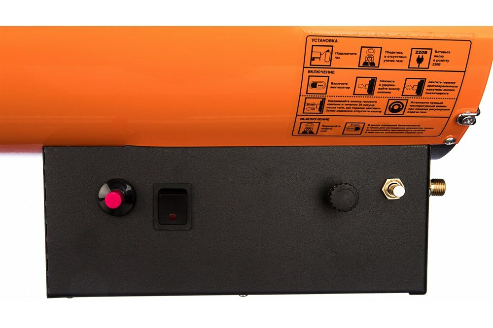 | Дополнительная информация | сжиженный; система розжига: пьезорозжиг; управление: механическое; пропан/бутан; газовая пушка предназначена для обогрева помещений в условиях умеренного климата категории размещения 3.1 (УХЛ 3.1) по ГОСТ 1515069; давление газа 1,5 бар; проволочная задняя решетка из нержавеющей стали; передняя решетка из листовой нержавеющей стали; форсунка 1,25 мм; ручка из пластика; длина газового шланга 2 м; длина кабеля питания 1,2 м; резьба присоединения шланга G1/4; длина присоединительного штуцера 15 мм |