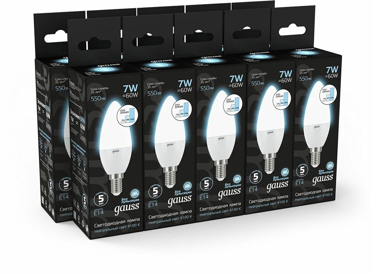 Упаковка ламп 10 штук Gauss Свеча 7W 550lm 6500КE14 шаг. диммирование LED1/10/100 интересное: