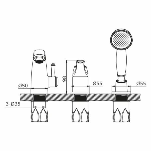 Смеситель на борт ванны с лейкой и шлангом ViEiR V413532-D