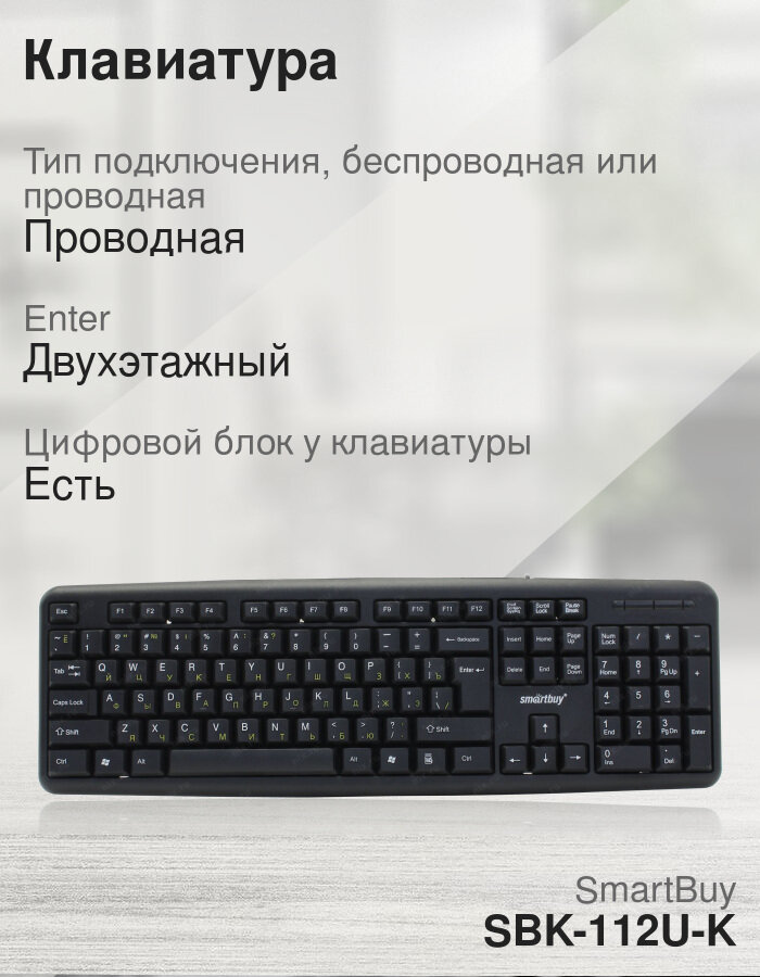 Клавиатура Smartbuy ONE 112 USB черная (SBK-112U-K), 1072355