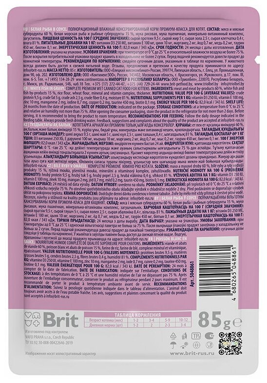 Купить Brit: Premium, Пауч для котят, Белая рыба в соусе, 85 гр.