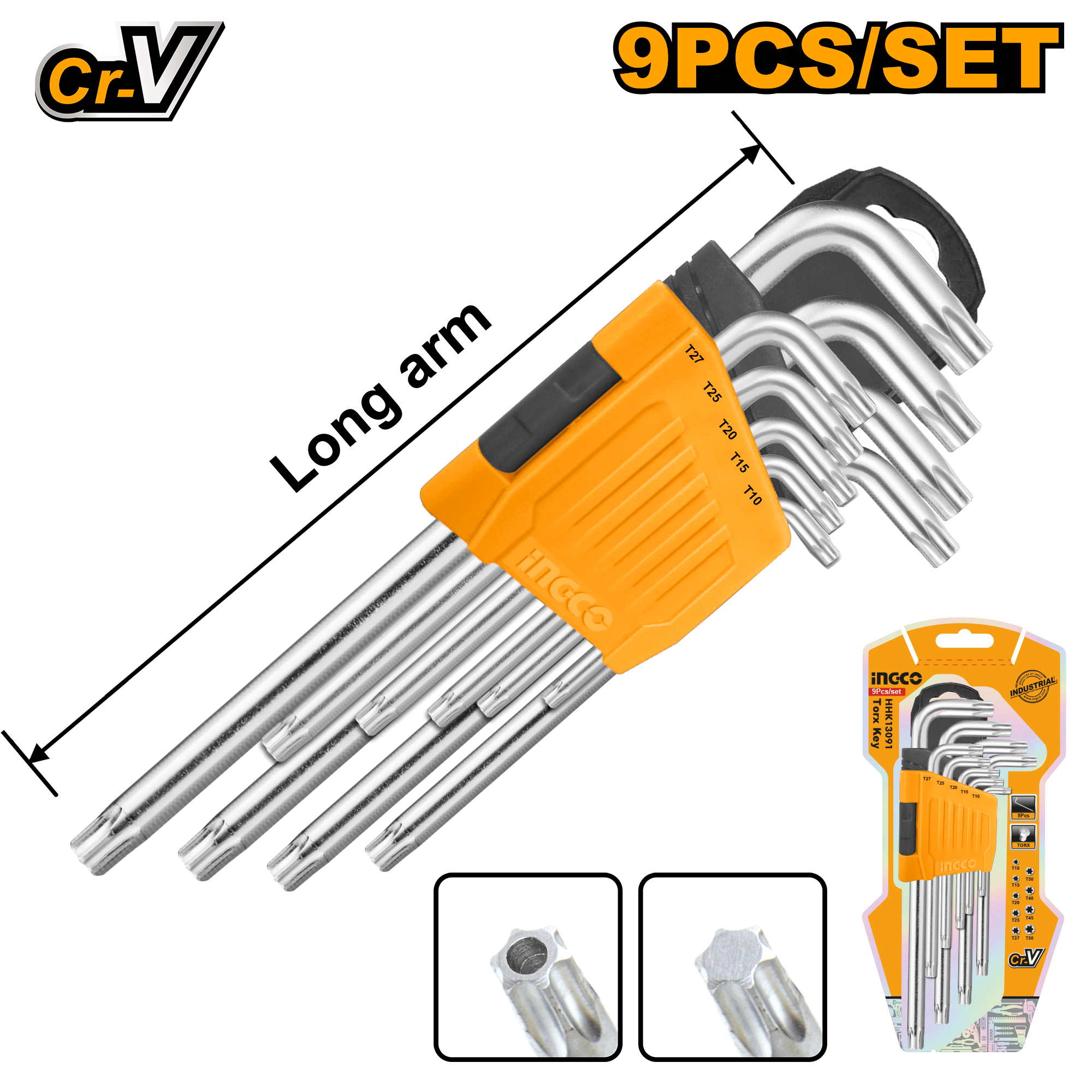 Набор шестигранников TORX Long INGCO INDUSTRIAL HHK13091, Т10-Т50, 9 шт