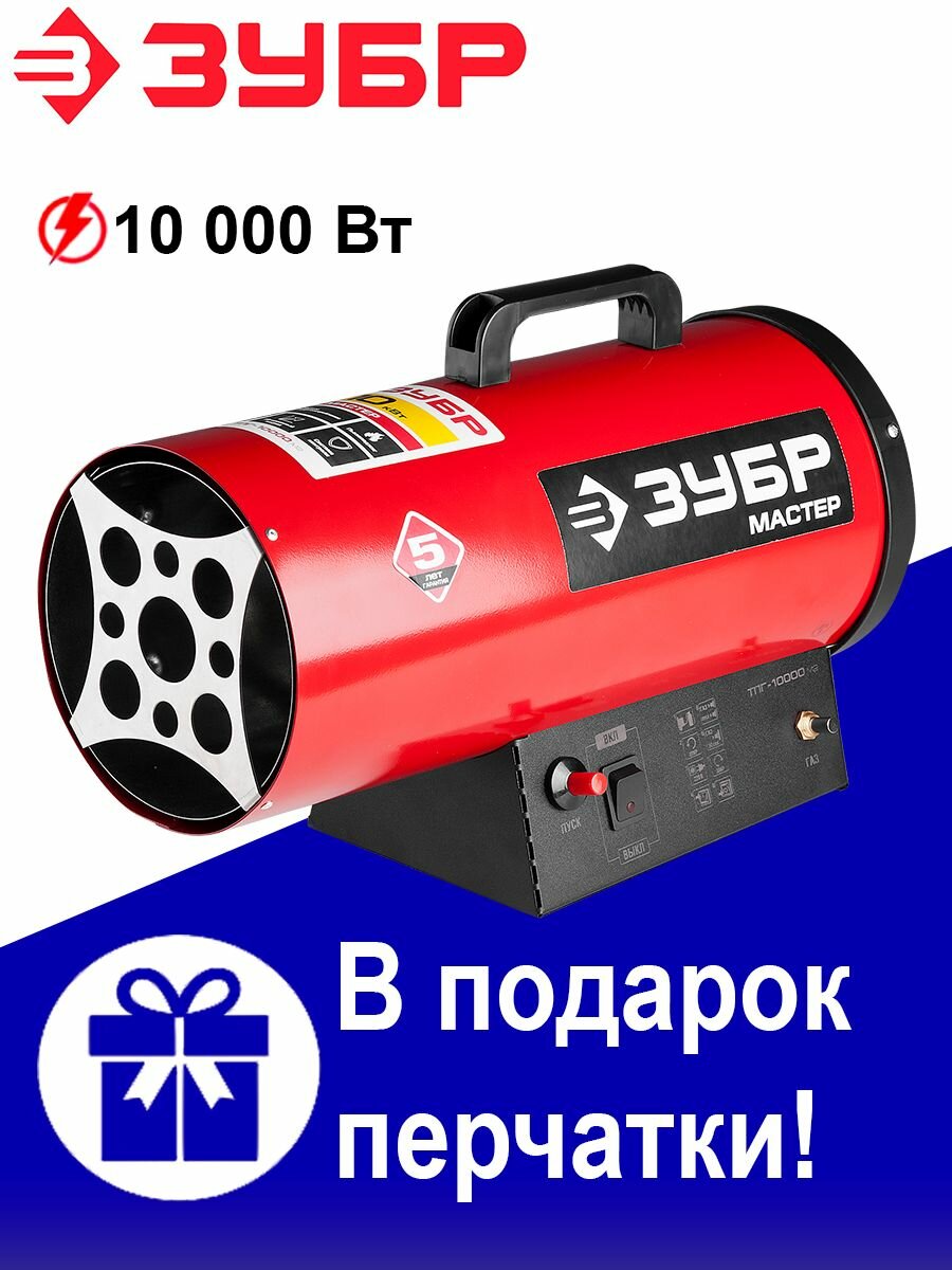 ЗУБР 10 кВт, 330 м.куб/час, 0,75 кг/ч, газовая тепловая пушка ТПГ-10000_М2, мастер