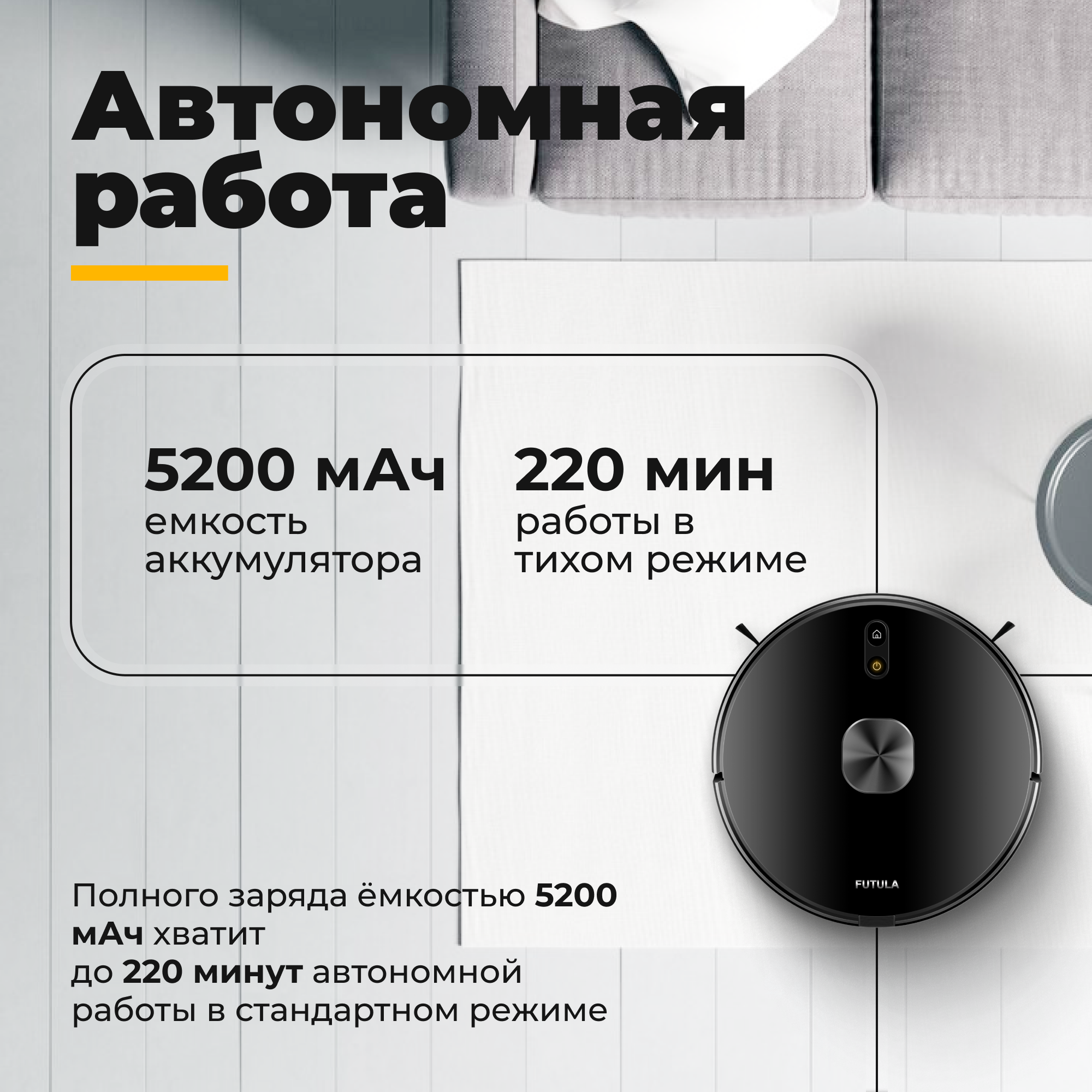 Робот-пылесос Futula Robot Vacuum Cleaner and Mop G10 черный, сухая/влажная уборка, управление через смартфон