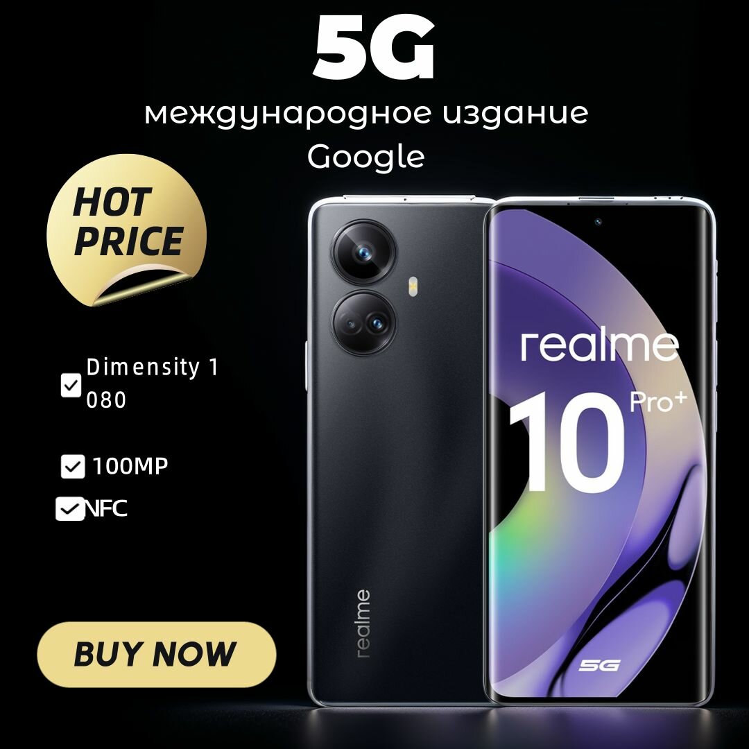 G, Смартфон realme 10 Pro+ 5G Русификация Изогнутый экран, NFC