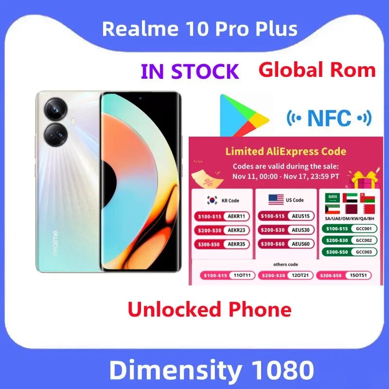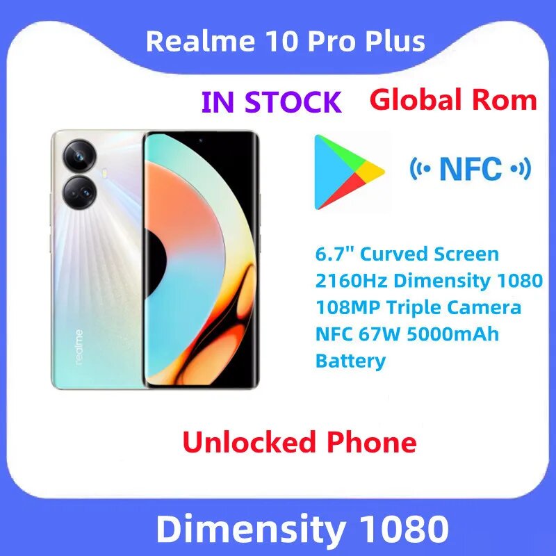 Смартфон realme 10 pro plus, 6,7 дюйма, FHD +, 8 ядер, NFC, 1080 МП, 5000 мАч