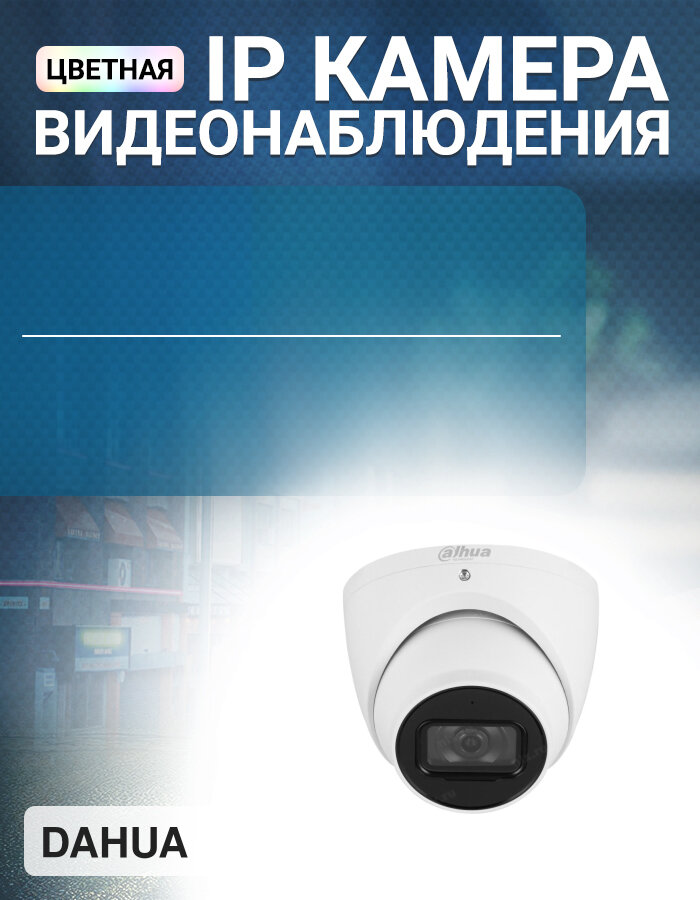 DAHUA Уличная купольная IP-видеокамера с ИИ2Мп; 1/2.8” CMOS; объектив 2.8мм; механический ИК-фильтр; WDR(120дБ); чувствительность 0.002лк@F1.4; сжатие