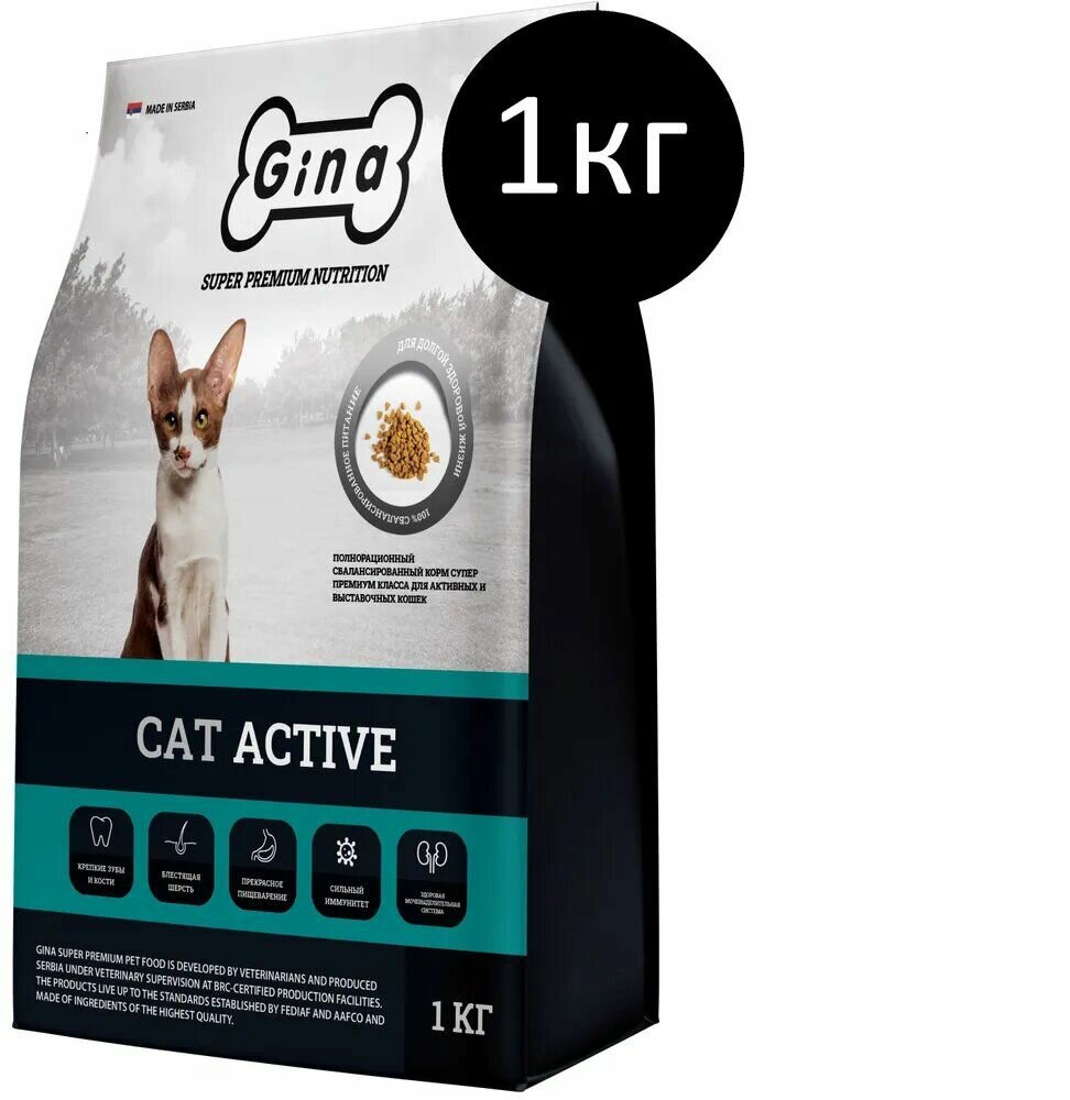 Корм сухой для активных кошек Gina Cat Active, 1 кг