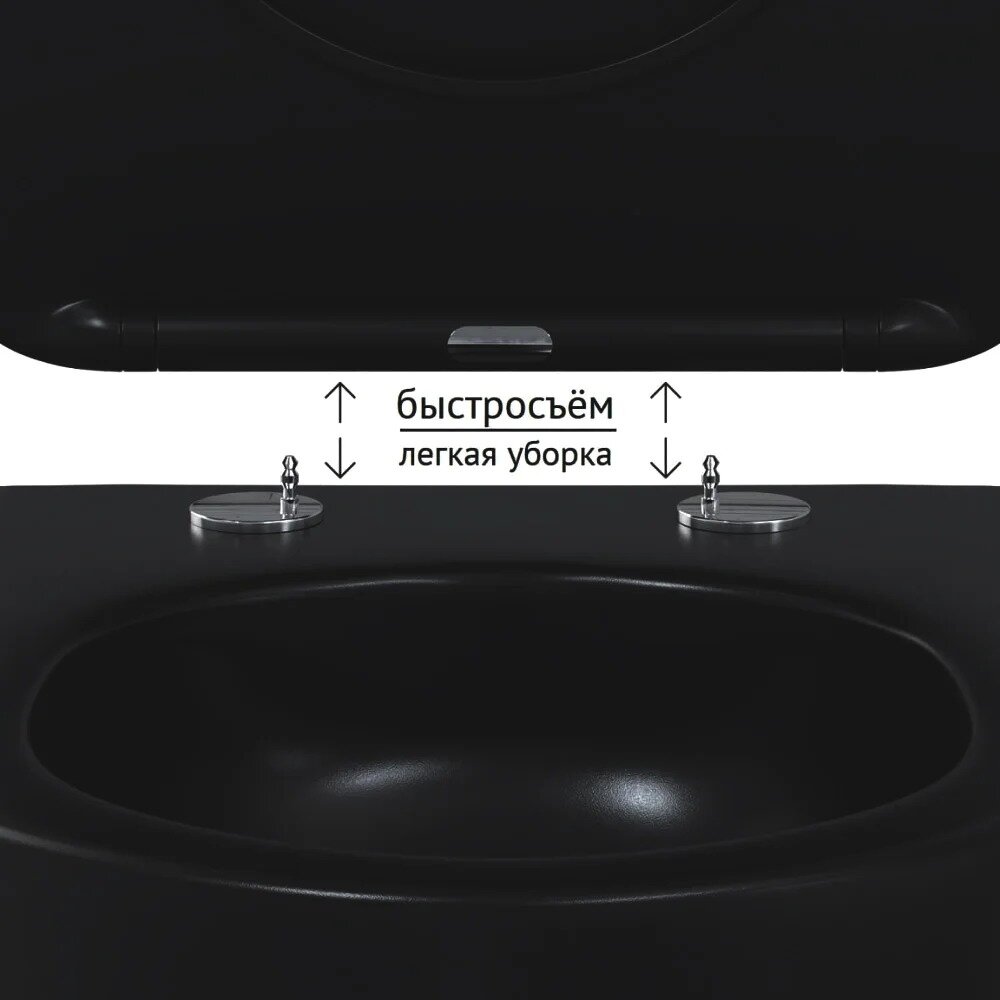 Унитаз Berges подвесной VENTAS Black Rimless 49 см, сиденье дюропласт Ventas Slim SO, микролифт, быстросъм (082136)