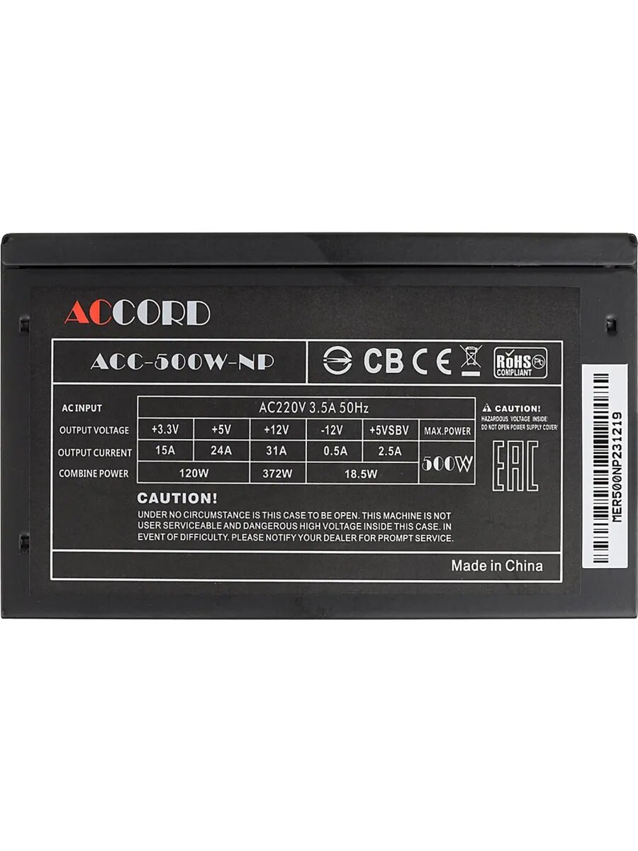 Блок питания Accord ACC-500W-NP, 500Вт, 120мм [acc-500-np]