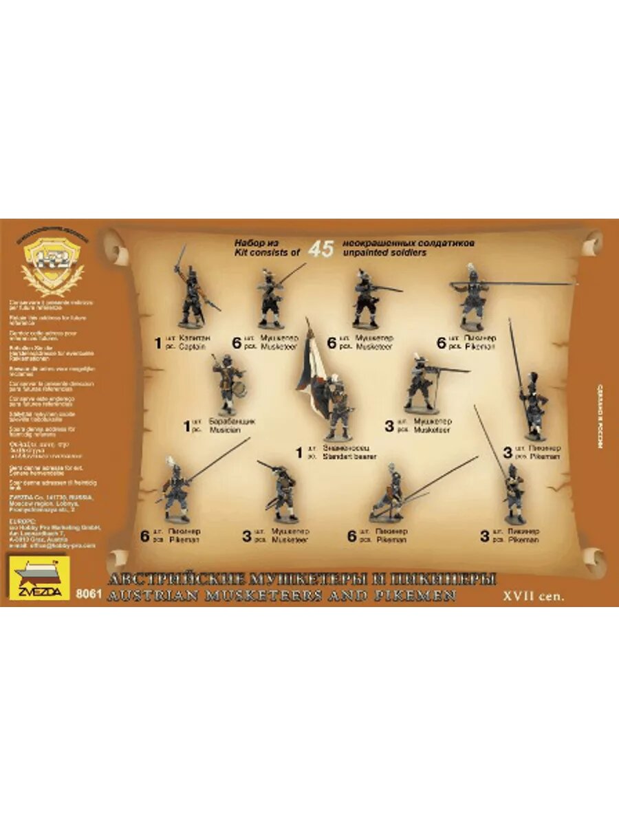 Сборная модель ZVEZDA Австрийские мушкетеры и пикинеры XVII века (8061) 1:72