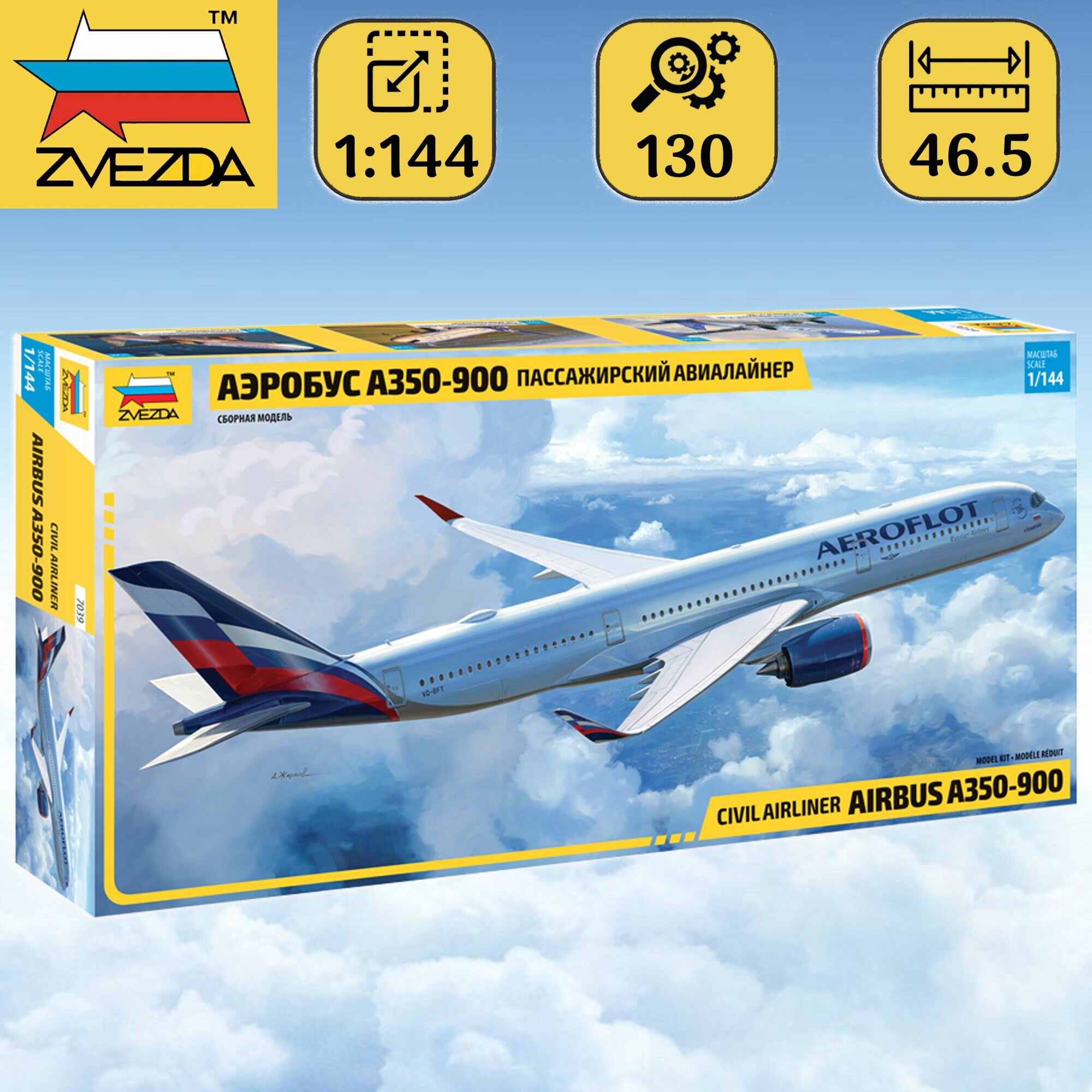 Сборная модель ZVEZDA Пассажирский авиалайнер Аэробус А350-900 1:144 7039