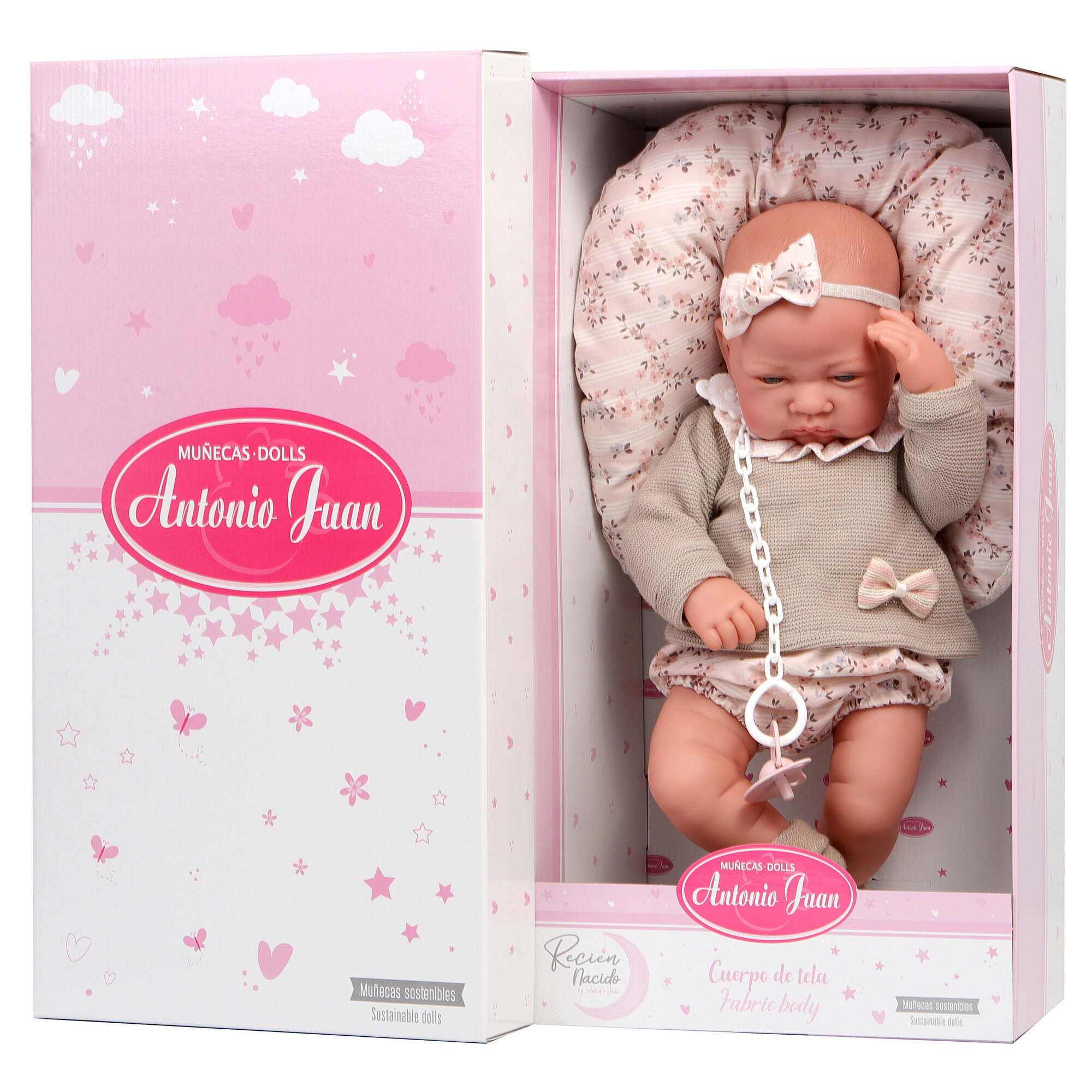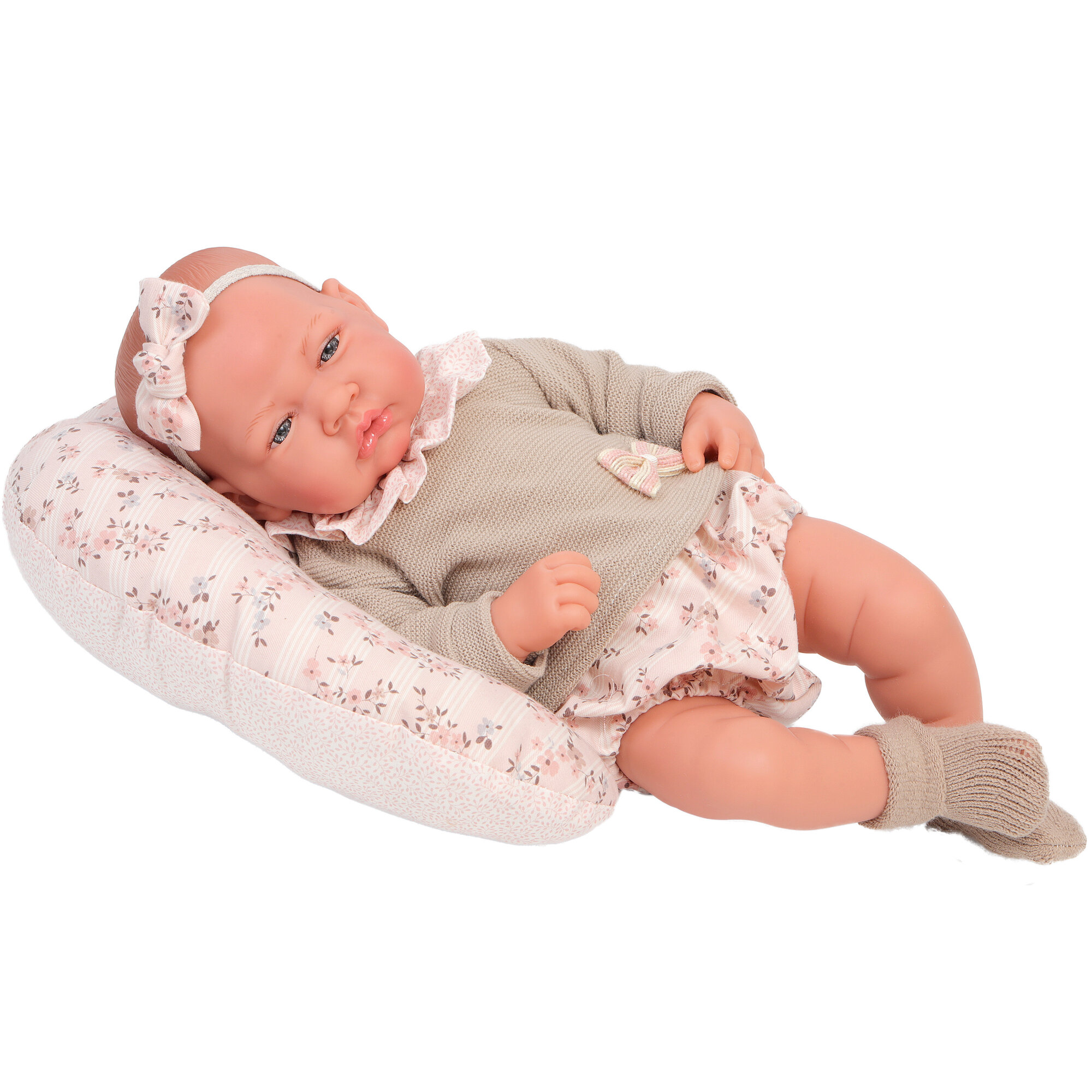 Кукла младенец испанская ANTONIO JUAN Валерия на подушке, 42 см, мягконабивная 33224