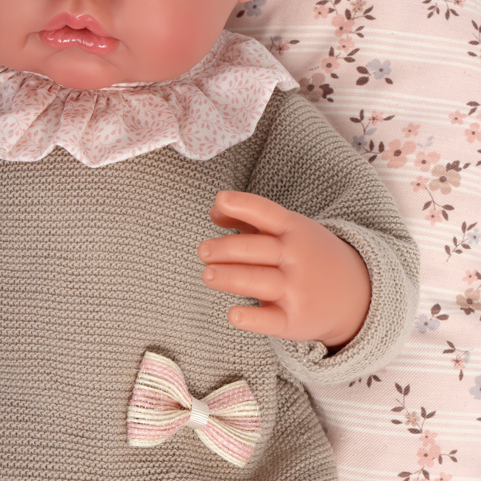 Пупс "Recién Nacida con cojín y chaqueta" (Малышка в серой куртке с подушкой)