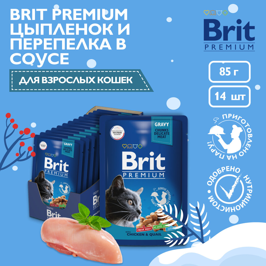 Корм Brit Premium Chicken & Quail (в соусе) для кошек, цыпленок и перепелка, 85 г x 14 шт