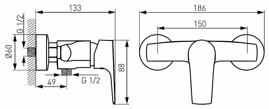 Смеситель для душа настенный FERRO TIGA BTG7VL хром