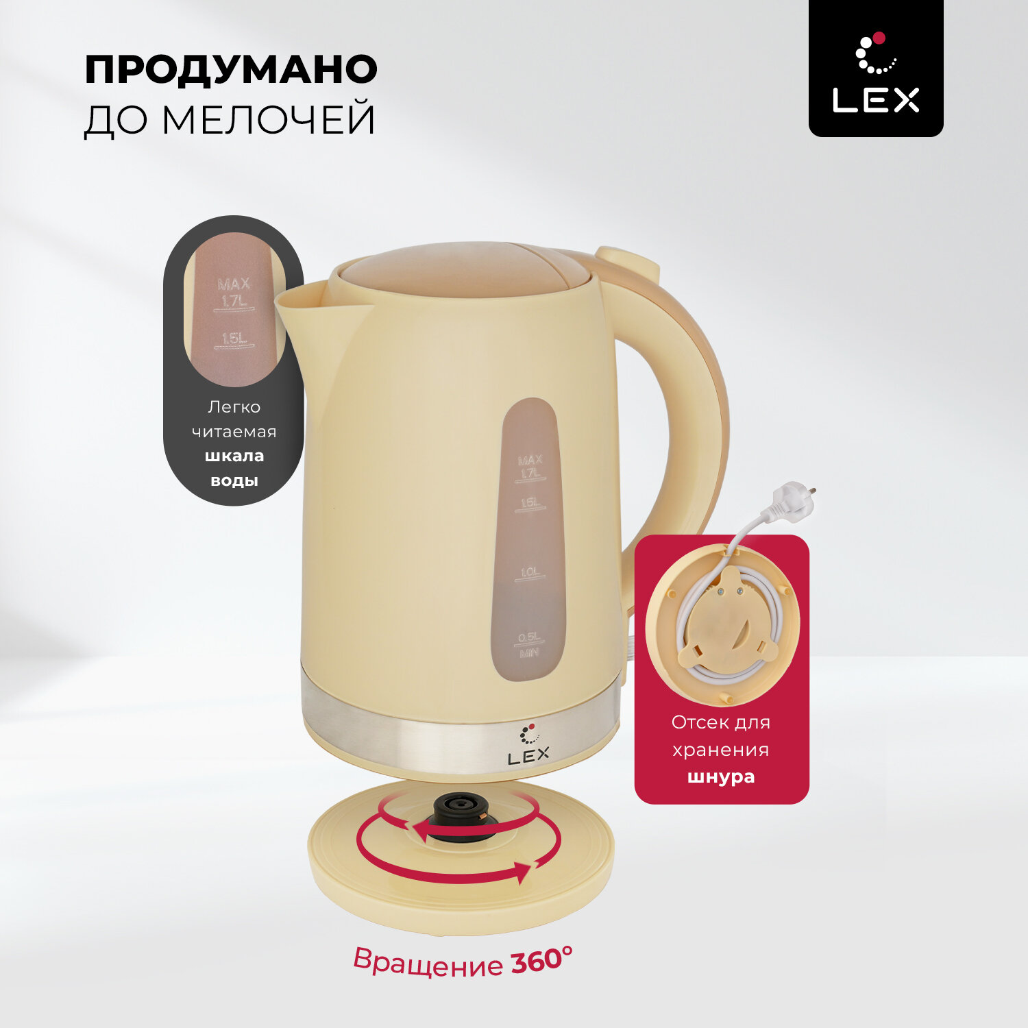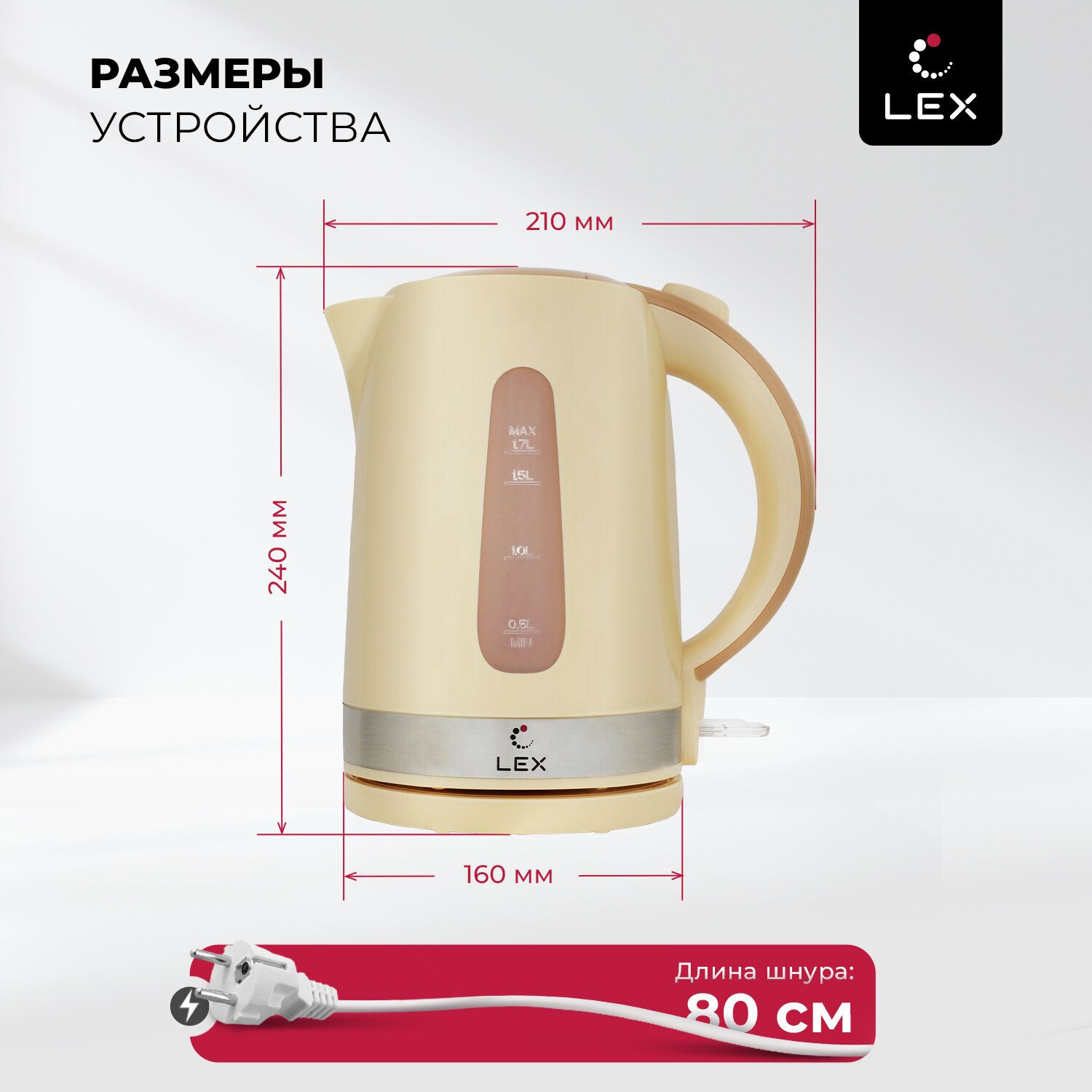 Чайник электрический Lex LX 30028-3, пластик, 1.7 л, бежевый