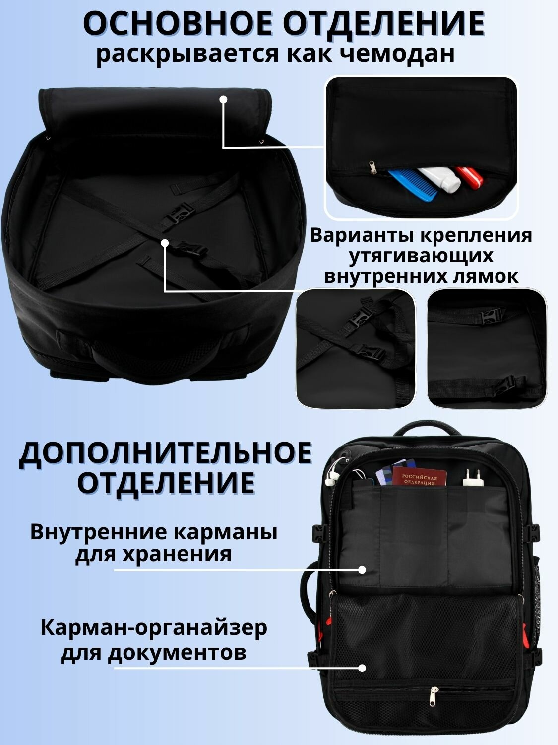 | Дополнительная информация | Рюкзак сумка чемодан в самолет ручная кладь 55х40х20 |