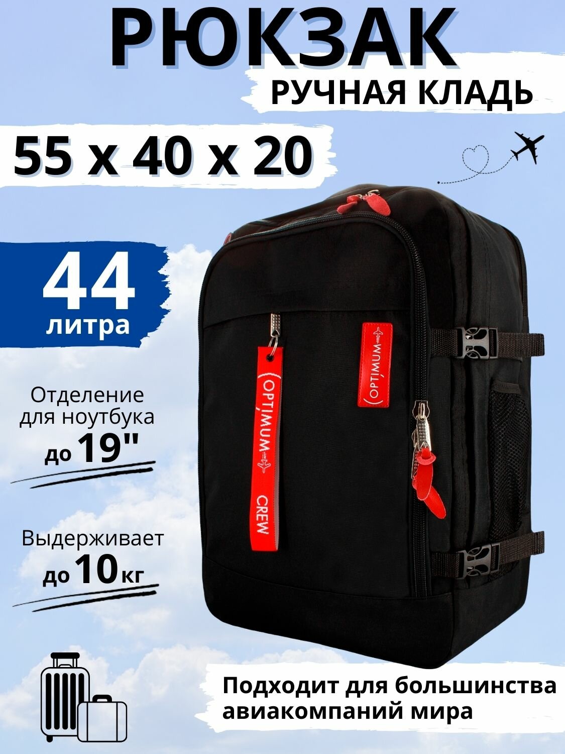 Рюкзак сумка чемодан ручная кладь S в самолет дорожная 44 л, черный