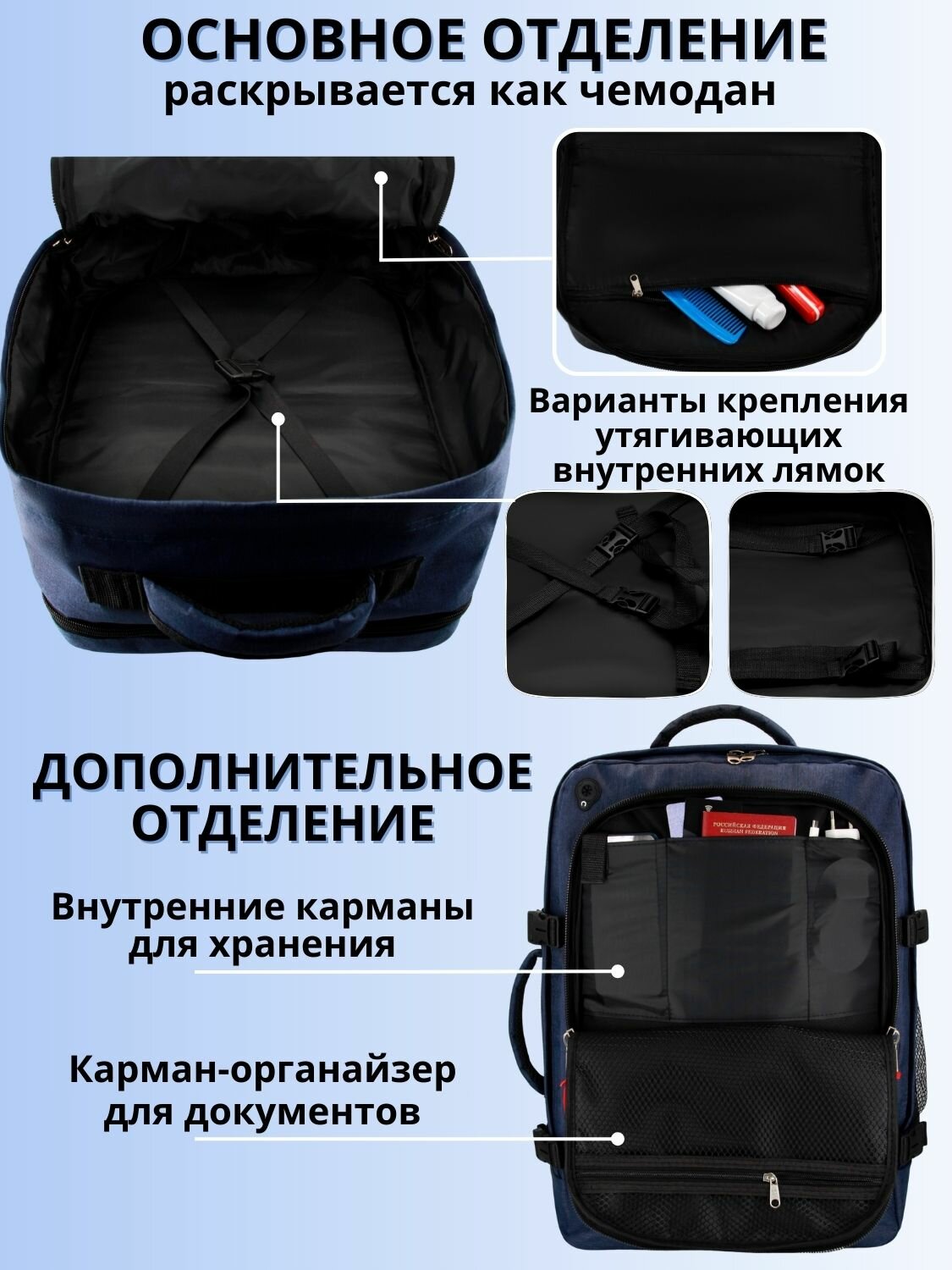 Ниже Вы можете прочитать отзывы на Рюкзак сумка чемодан ручная кладь 55х40х20 в самолет, синий, ознакомится с подробными характеристиками, посмотреть интересные обзоры и фотографии на Рюкзак сумка чемодан ручная кладь 55х40х20 в самолет, синий.