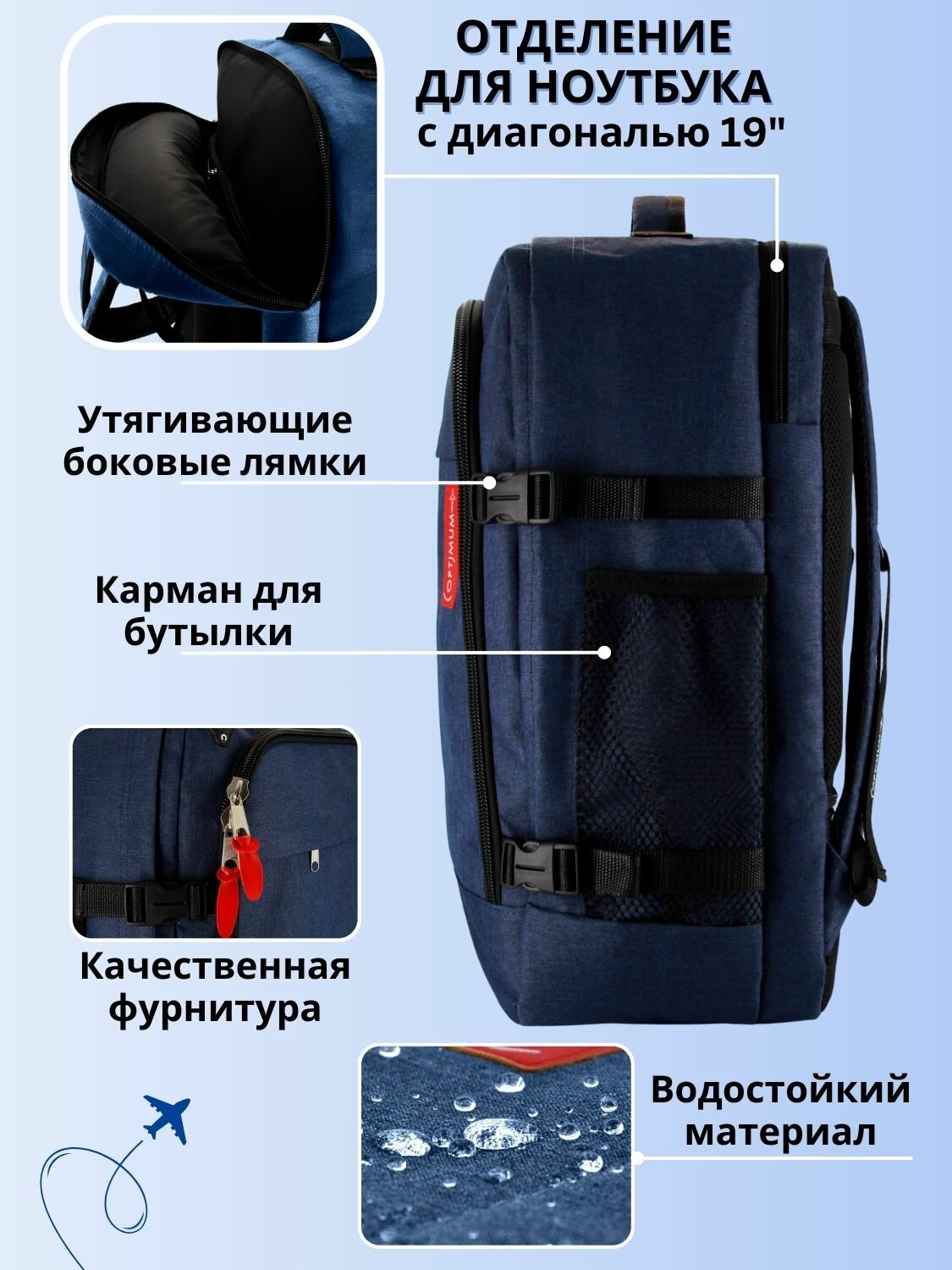 | Дополнительная информация | Рюкзак сумка чемодан в самолет ручная кладь 55х40х20 |
