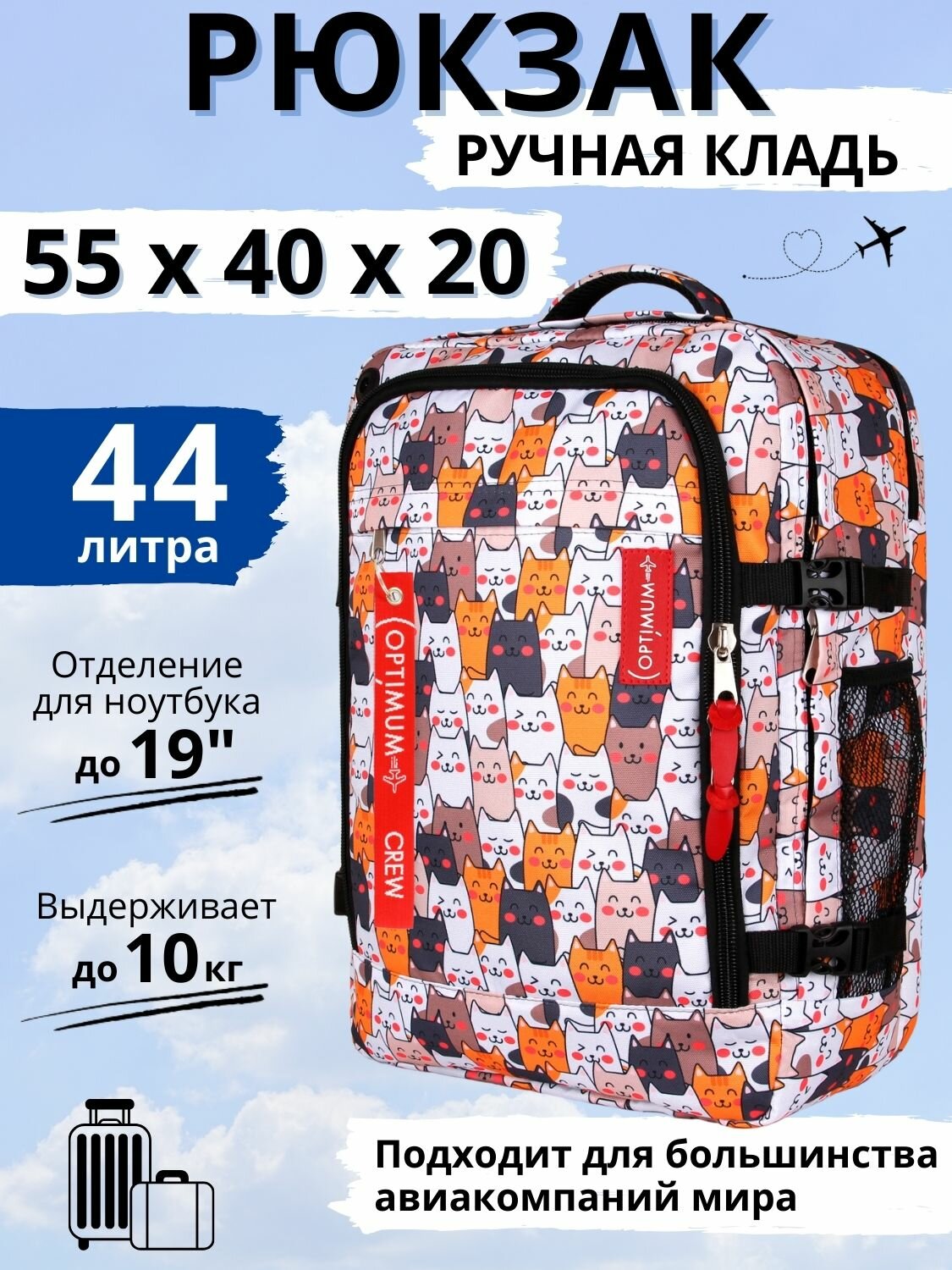 Купить Рюкзак сумка чемодан ручная кладь 55х40х20 в самолет, котики