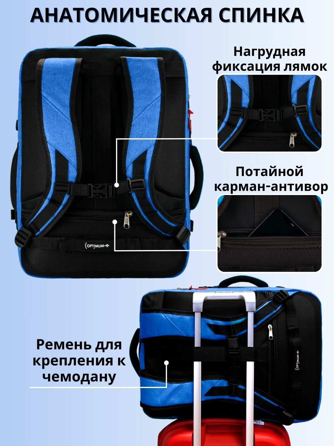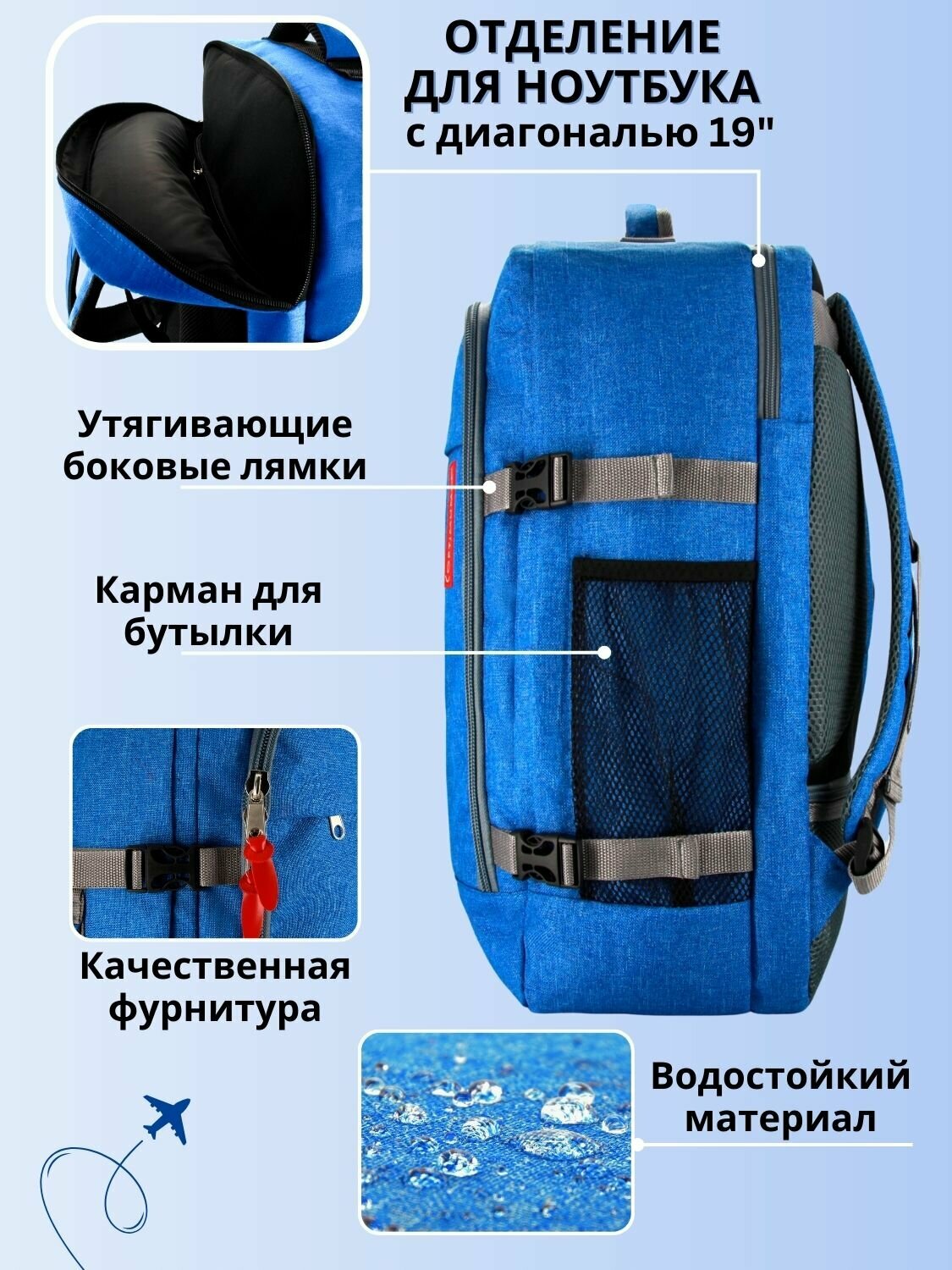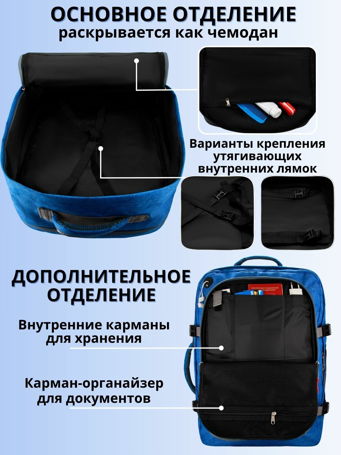 Рюкзак сумка чемодан ручная кладь S в самолет дорожная 44 л, синий